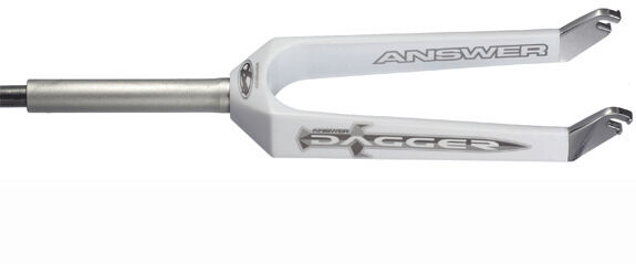 Answer Dagger Carbon BMX Forks are a lightweight race fork made from a 4K thread count carbon fiber weave with a 1-pc 7000 series aluminum steerer tube and crown, 7000 series aluminum dropouts with 3/8" axle slots and a built in compression device.